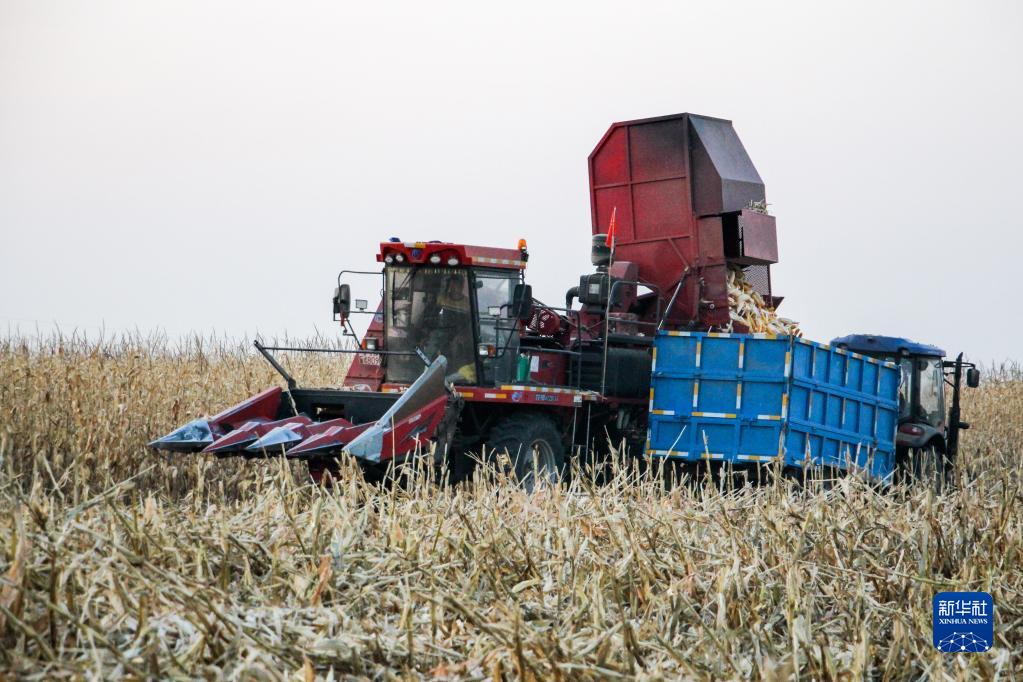 10月29日,在內蒙古通遼市科爾沁左翼中旗花吐古拉鎮三家子村的鹽堿化耕地改良試點示范區,農機手駕駛收割機收割玉米。