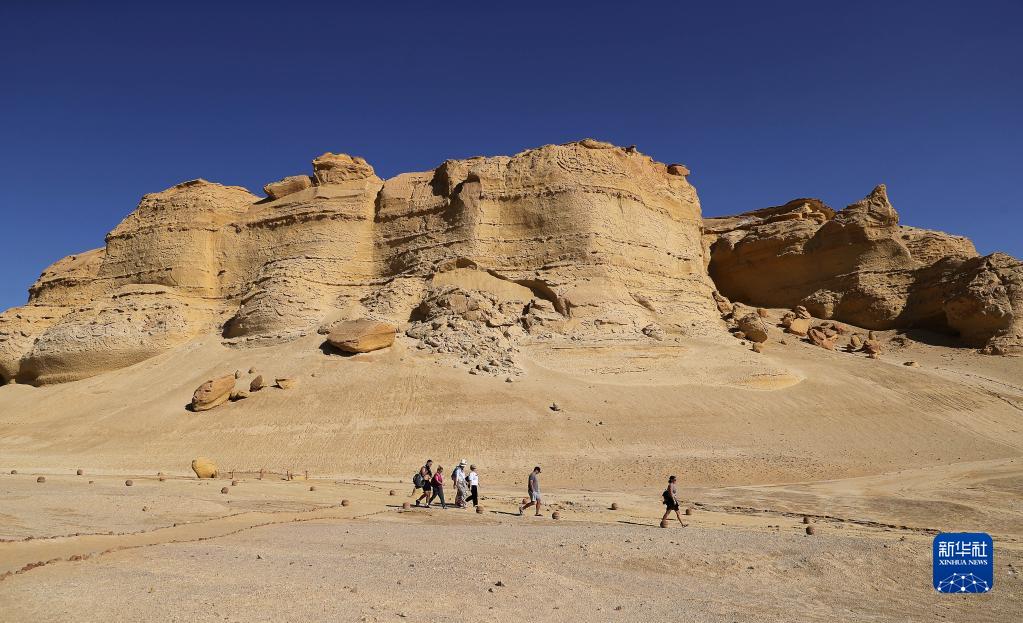 10月29日,游客在埃及法尤姆省參觀風蝕地貌。