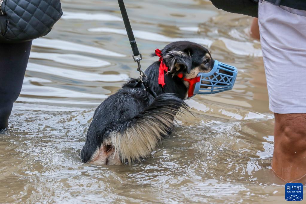 10月30日,一只狗在菲律賓甲米地省被洪水淹沒的街道上前行。