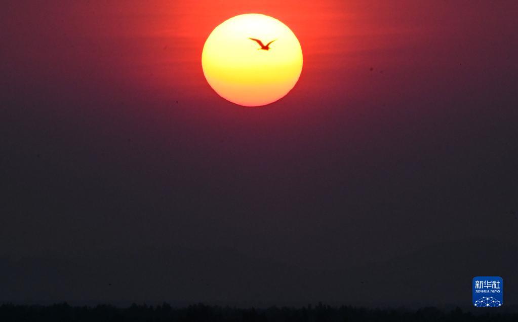 一只鳥在廣西山口紅樹林生態國家級自然保護區上空飛行(10月23日攝)。