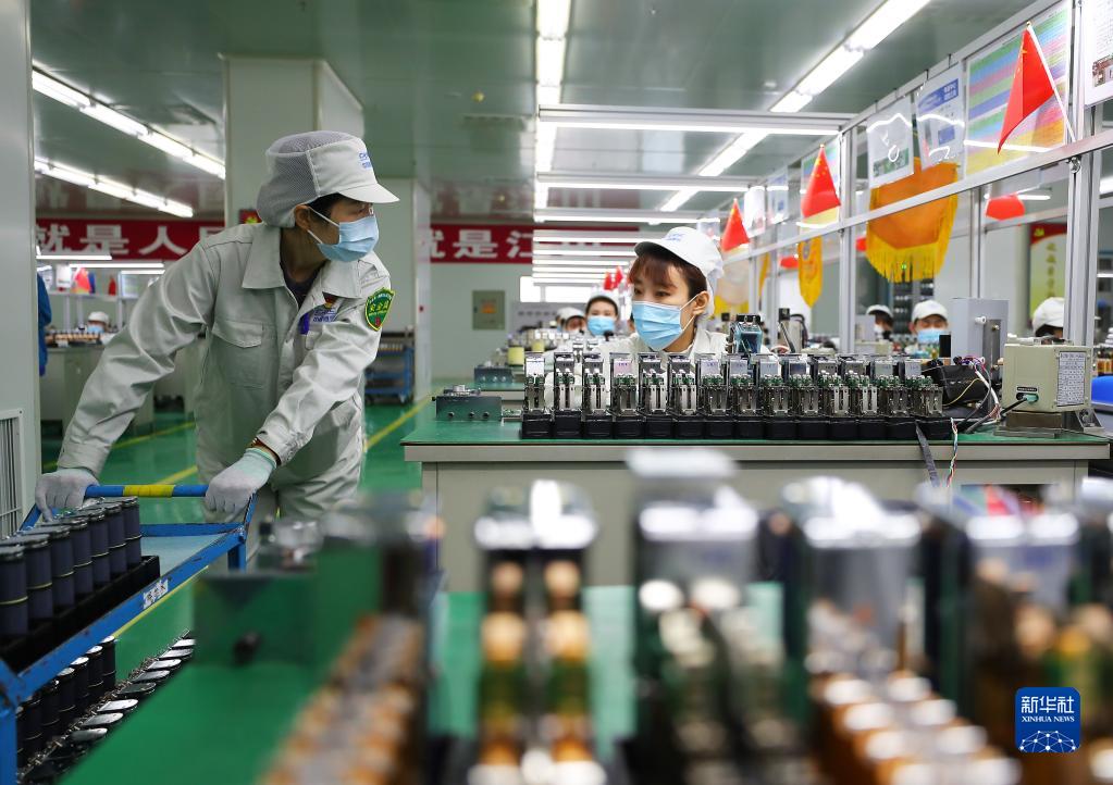 10月31日,柯曉賓(左一)在沈陽鐵路信號有限責任公司電器中心車間分發繼電器。