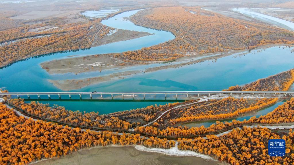 深秋時節,新疆塔里木河流域胡楊林披上“金裝”,與碧水、大漠相互映襯,構成一幅秀美的生態畫卷。新疆沿塔里木河流域分布著約1500萬畝胡楊林,是世界面積最大的胡楊林區。