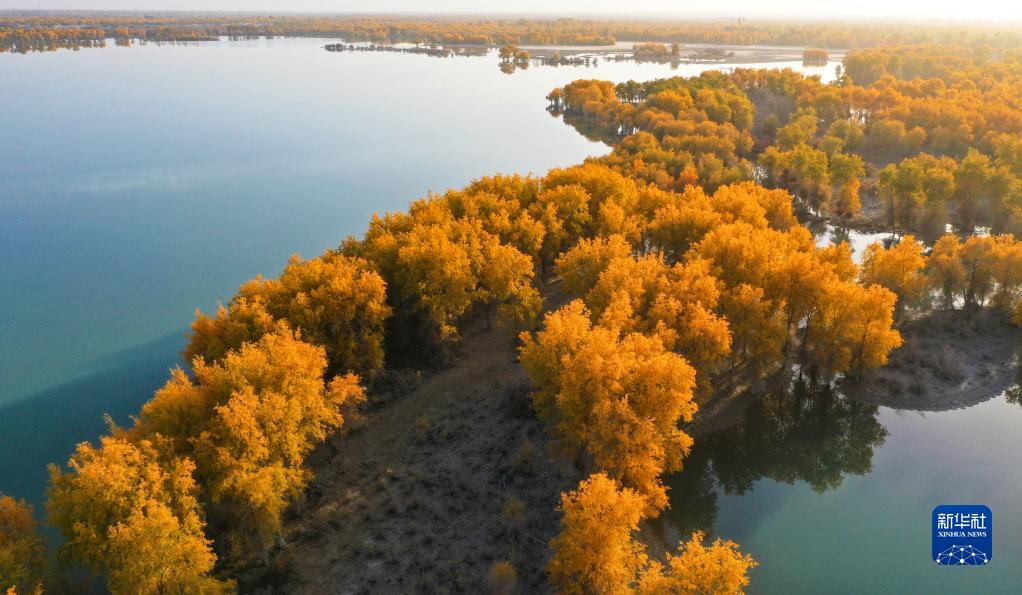 深秋時節,新疆塔里木河流域胡楊林披上“金裝”,與碧水、大漠相互映襯,構成一幅秀美的生態畫卷。新疆沿塔里木河流域分布著約1500萬畝胡楊林,是世界面積最大的胡楊林區。