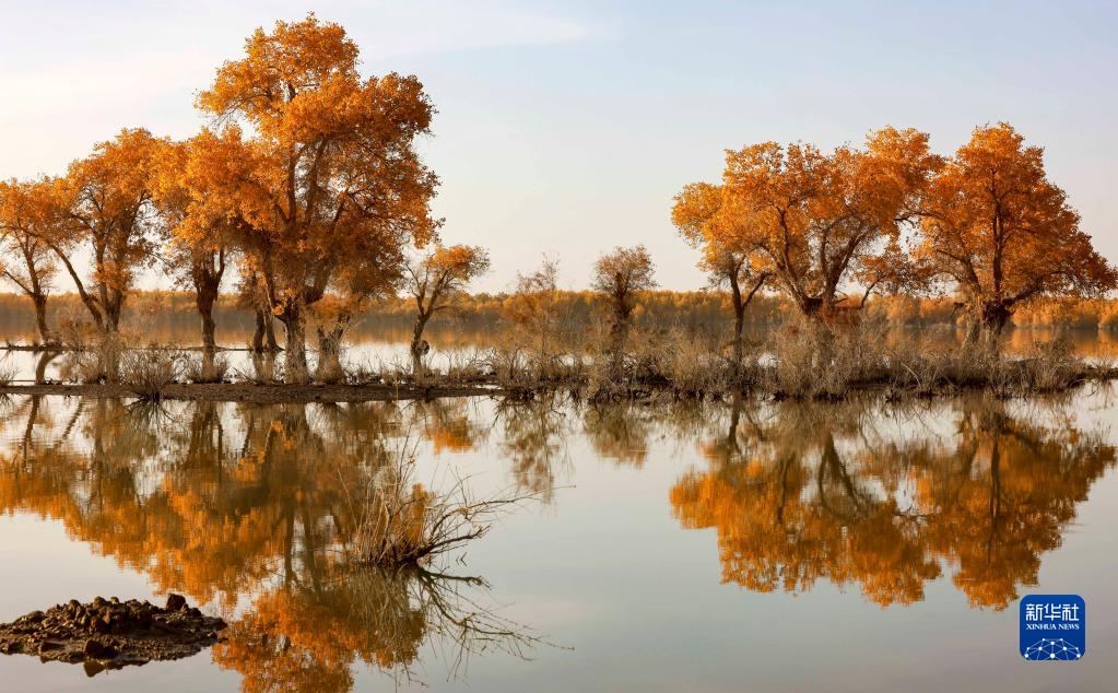 深秋時節,新疆塔里木河流域胡楊林披上“金裝”,與碧水、大漠相互映襯,構成一幅秀美的生態畫卷。新疆沿塔里木河流域分布著約1500萬畝胡楊林,是世界面積最大的胡楊林區。