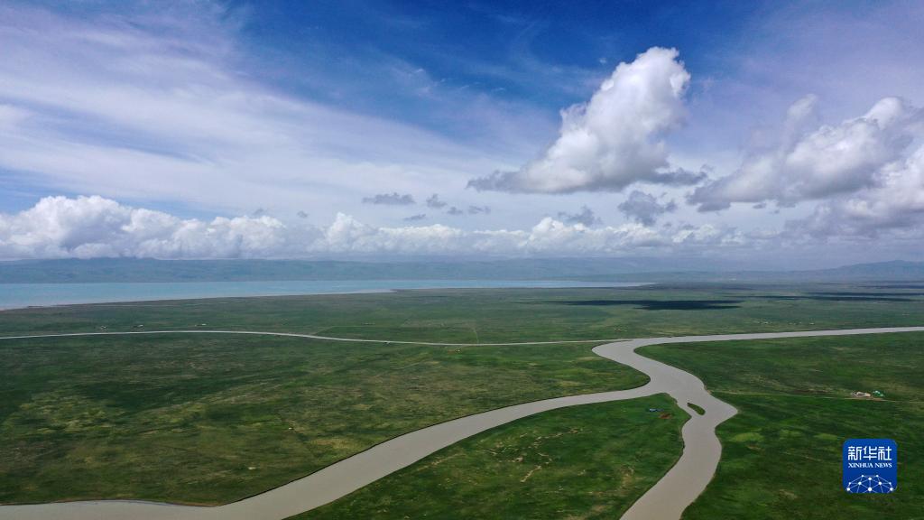 這是青海湖布哈河濕地一景(2020年7月10日攝,無人機照片)。