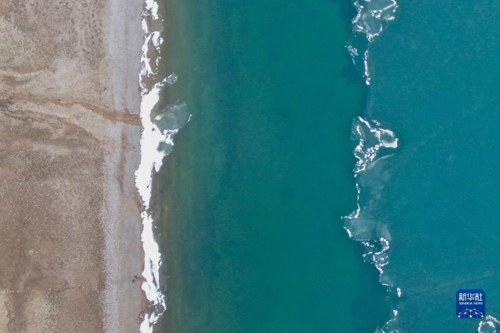 這是2020年4月20日在青海省海南藏族自治州共和縣黑馬河鎮拍攝的青海湖一景(無人機照片)。