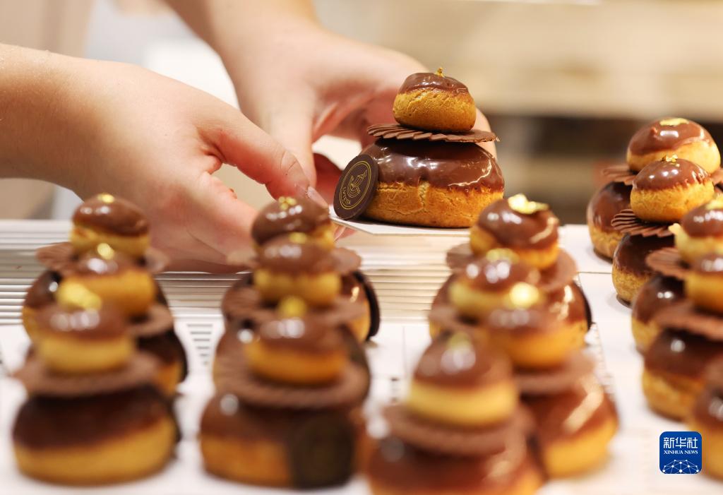 10月31日,工作人員在法國巴黎巧克力沙龍上展示巧克力甜點。