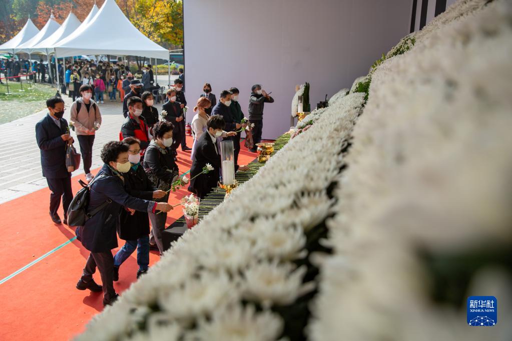 首爾市龍山區梨泰院洞一帶10月29日晚間發生踩踏事故。截至11月1日上午11時,事故已造成156人死亡和151人受傷。韓國政府把10月30日至11月5日定為全國哀悼期,不少民眾走進設在首爾廣場首爾圖書館正門前的集體焚香所,為遇難者獻花默哀。
