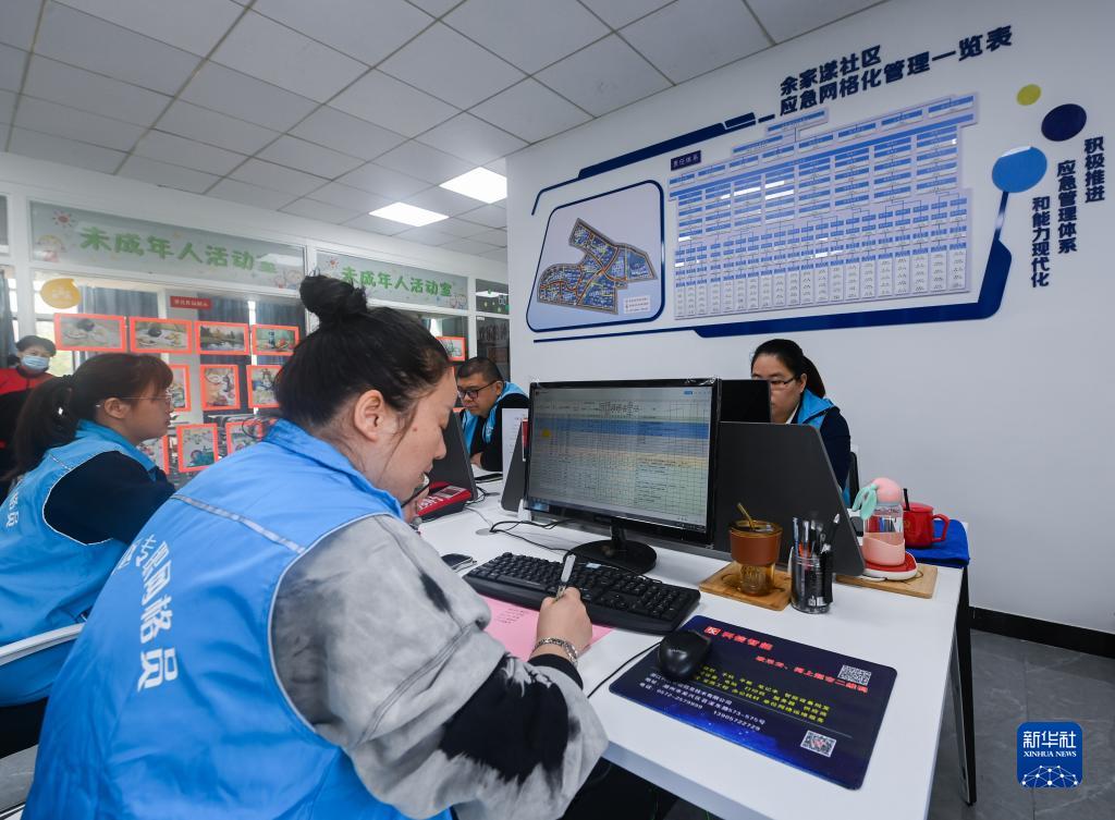 11月1日,在湖州市吳興區飛英街道余家漾社區黨群服務中心,專職網格員對日常檢查中發現的安全隱患進行上報及處理。