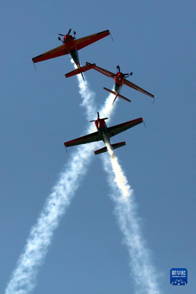 11月1日,在約旦亞喀巴,約旦皇家獵鷹飛行隊在國際特種作戰部隊武器裝備展上進行特技飛行表演。