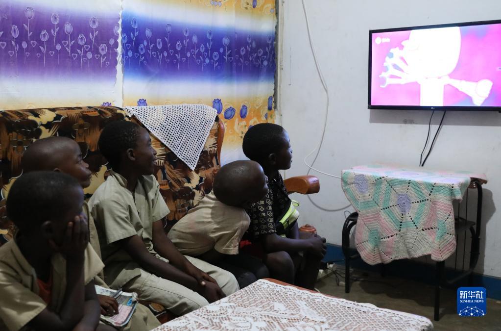 10月31日,在布隆迪布瓊布拉鄉村省穆蒂姆布齊一村莊,孩子們在村民家中觀看衛星電視節目。