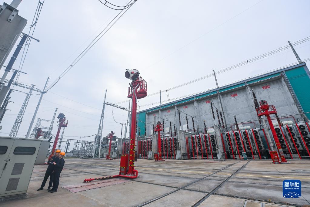 11月2日,國網浙江超高壓公司運檢人員在±800千伏特高壓金華換流站進行設備巡檢工作。