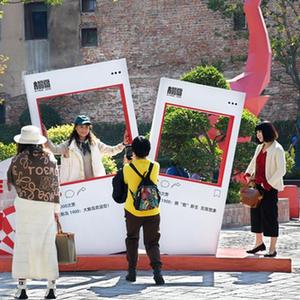 11月1日,青島市市南區銀魚巷,游客在一處改造后的老建筑內參觀。