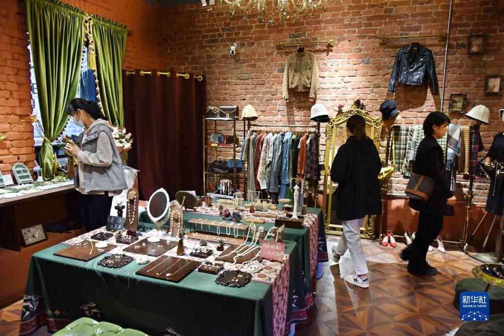 11月1日,游客在青島市市南區銀魚巷一新開的服飾店內選購。