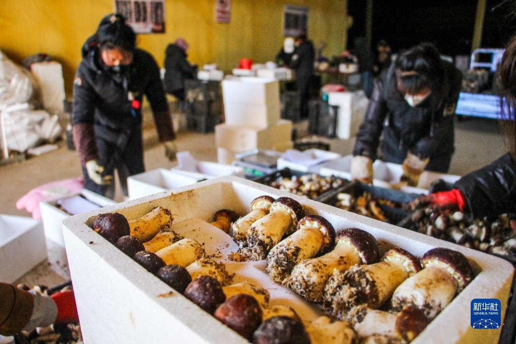 11月2日,在內蒙古通遼市科爾沁區慶和鎮火犁村,工作人員分揀包裝赤松茸。