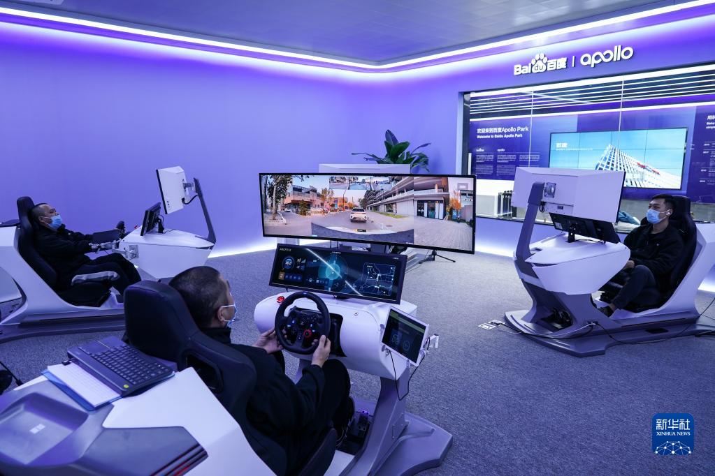 在北京經濟技術開發區5G云代駕的操控室內,工作人員遠程監控、操控無人車(11月1日攝)。