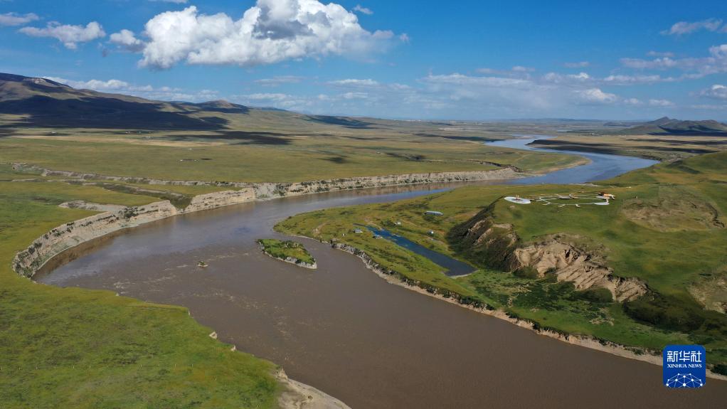 黃河流經甘肅省甘南藏族自治州瑪曲縣境內(2022年9月21日攝,無人機照片)。