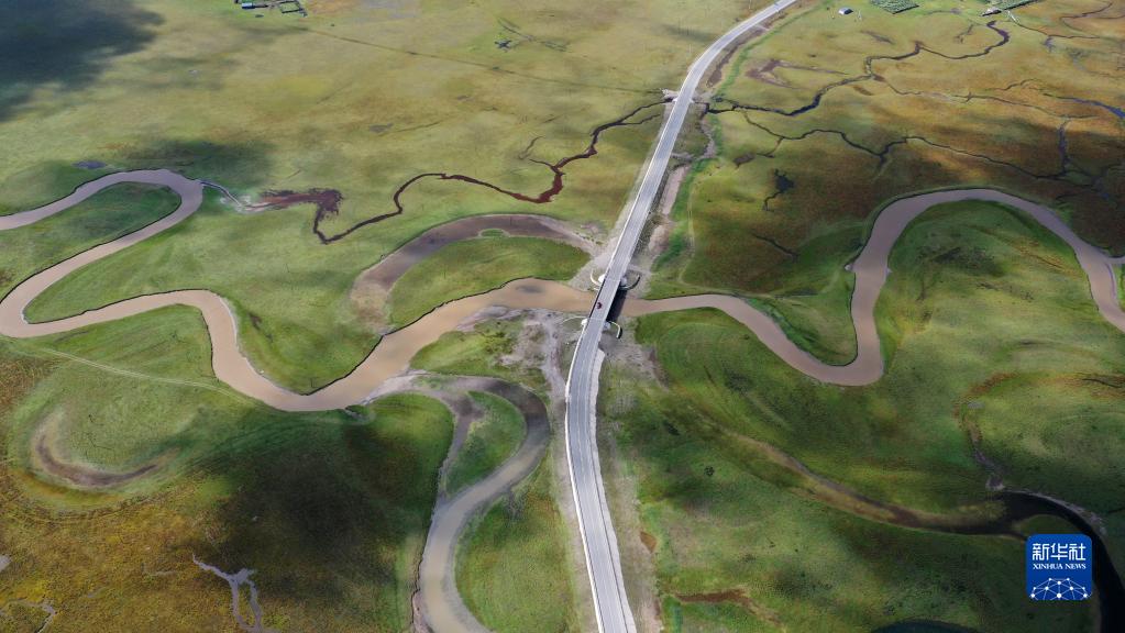 這是2022年9月21日拍攝的瑪曲縣阿萬倉濕地(無人機照片)。