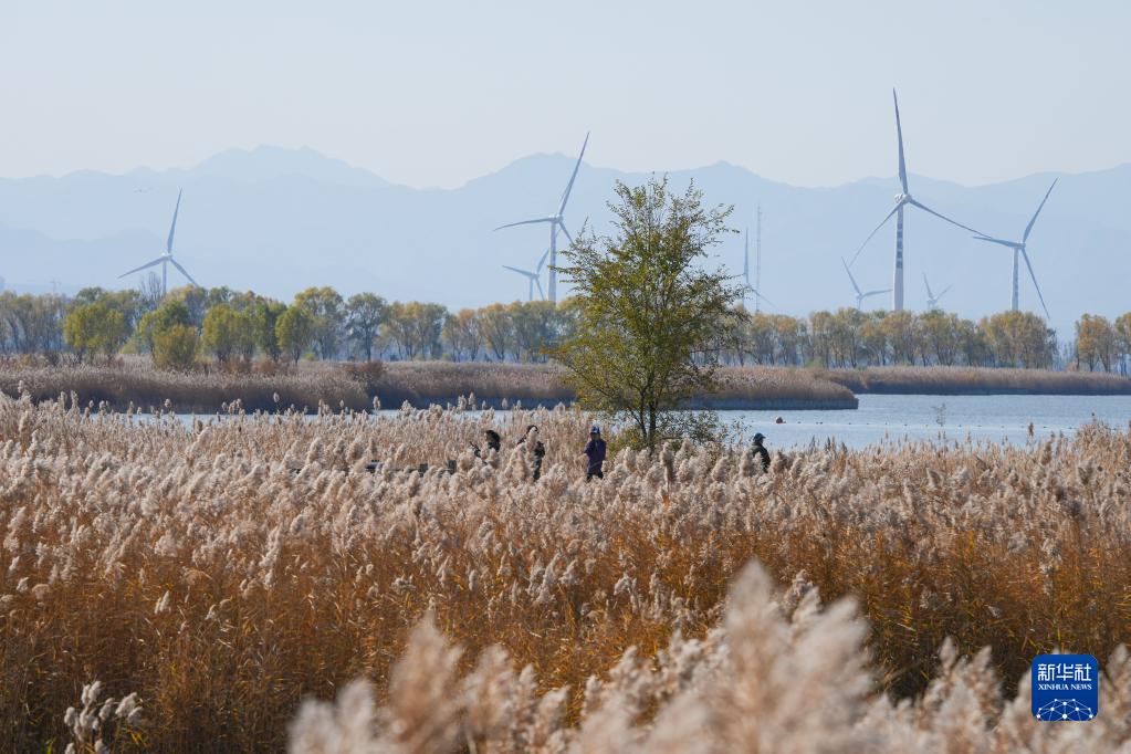 游客在北京野鴨湖國家濕地公園內參觀游覽(11月1日攝)。