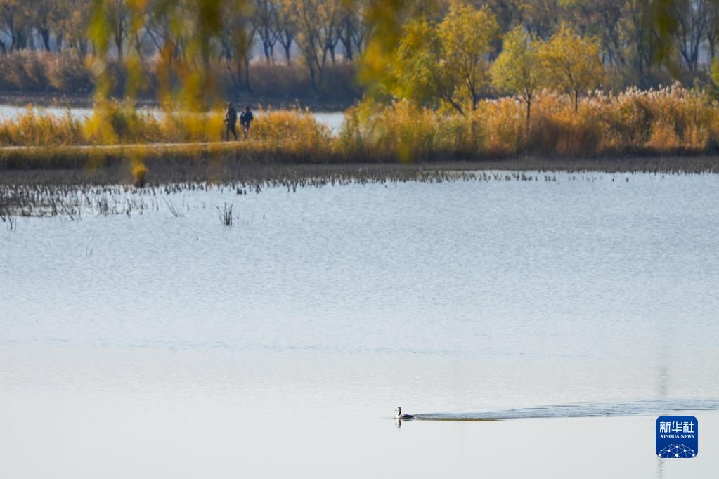 一只鳳頭??在北京野鴨湖國家濕地公園內(11月1日攝)。