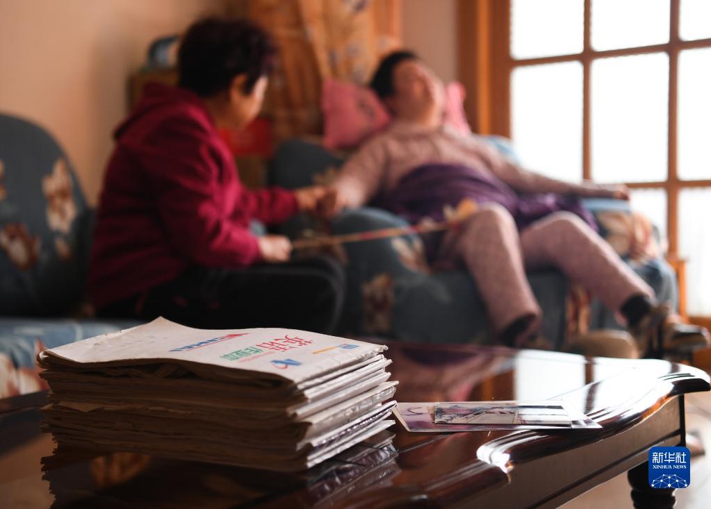 胡燕均幫助女兒進行蹬車訓練??蛷d桌子上放有胡燕均十年來寫的二十多本日記(11月1日攝)。