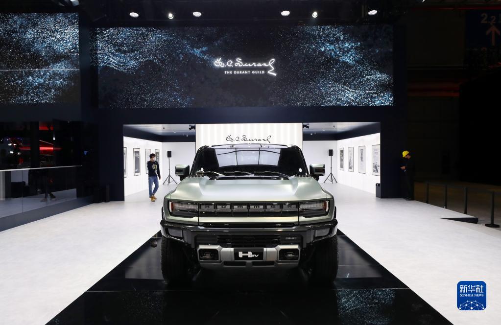 11月2日拍攝的通用汽車公司旗下道朗格品牌在進博會上展出的純電悍馬SUV車型。