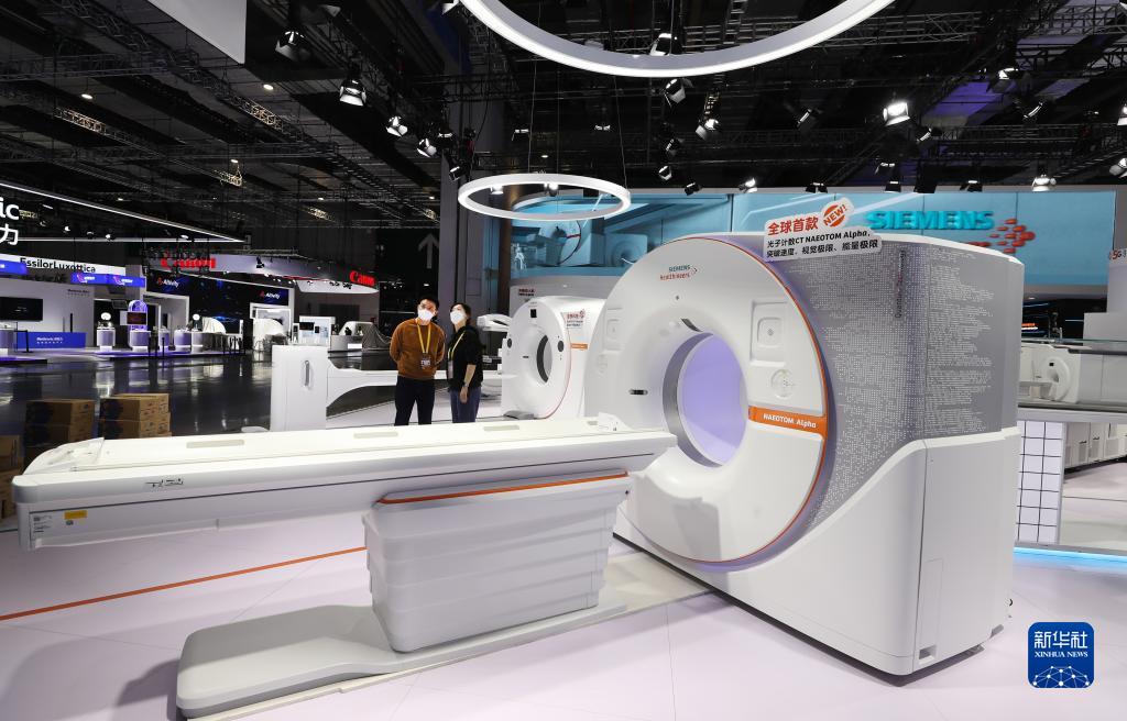 11月2日拍攝的德國西門子公司在進博會展臺展出的大型醫療設備。