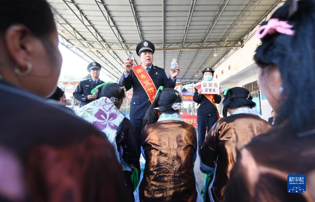 當日,廣西柳州市融水苗族自治縣禁毒辦、公安局在該縣桿洞鄉錦洞村開展禁毒教育活動,通過講解禁毒知識等方式,幫助群眾識別毒品,了解毒品危害,增強禁毒意識。