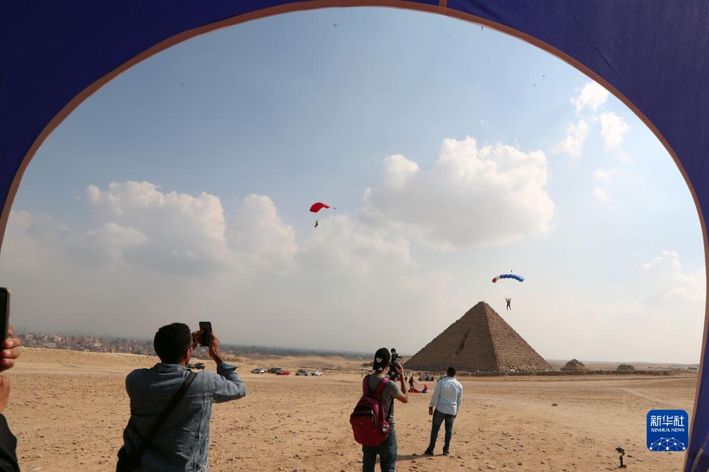 當日,第五屆金字塔國際跳傘節在埃及首都開羅附近的吉薩金字塔景區開幕,吸引了來自世界各地的100余名專業跳傘運動員參加。
