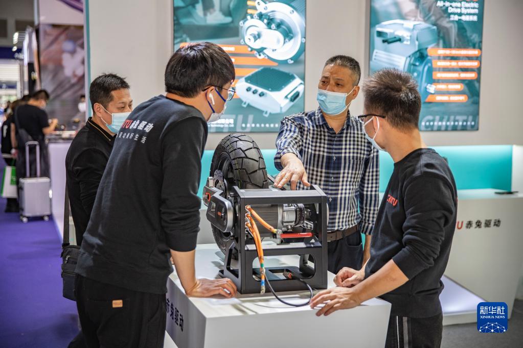 11月2日,在重慶國際博覽中心舉行的第二十屆中國摩博會現場,觀眾參觀了解電驅系統。