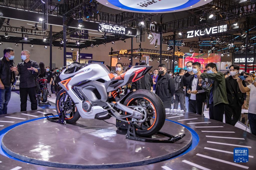 11月2日,在重慶國際博覽中心舉行的第二十屆中國摩博會現場,觀眾在參觀純電摩托車。