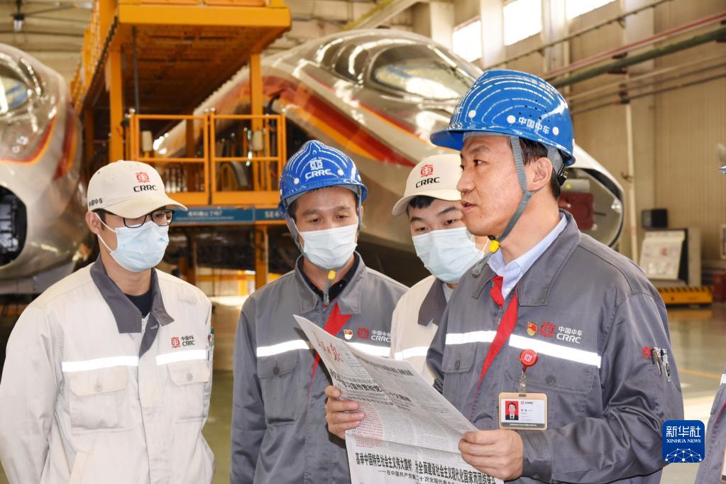 黨的二十大代表、中車青島四方機車車輛股份有限公司鉗工首席技師郭銳回到崗位后,在高鐵列車生產基地向黨員職工宣講黨的二十大精神。郭銳表示,黨的二十大報告強調“人才是第一資源”,要堅持“人才引領驅動”,努力培養造就更多“大國工匠、高技能人才”,這給產業工人極大的鼓舞。郭銳說,過去十年,中國高鐵事業快速發展,未來他將繼續弘揚工匠精神,攻堅克難用匠心雕琢精品,帶領培養越來越多的高技能人才,不斷為中國高鐵這張亮麗名片增光添彩。