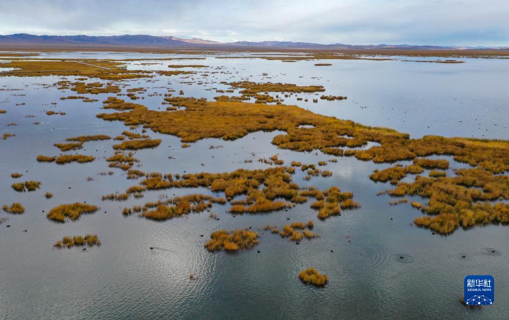 這是2022年10月18日在四川省阿壩藏族羌族自治州若爾蓋縣拍攝的花湖濕地(無人機照片)。