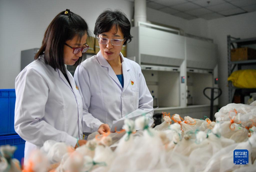 11月2日,在天津市農業科學院農作物研究所,時曉偉(右)與課題組同事工作交流。