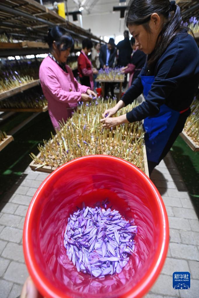 從11月初開始,浙江省建德市三都鎮圣江村迎來西紅花豐收的時節。三都鎮目前西紅花種植面積2000多畝,種植戶數近500余戶,花絲平均年產量約2900公斤,成為助力當地農戶致富增收和共同富裕的重要產業。