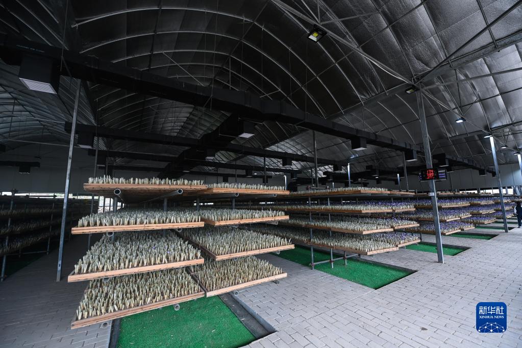 11月4日拍攝的建德市三都鎮圣江村圣火農業西紅花基地智能化育花大棚里的西紅花。