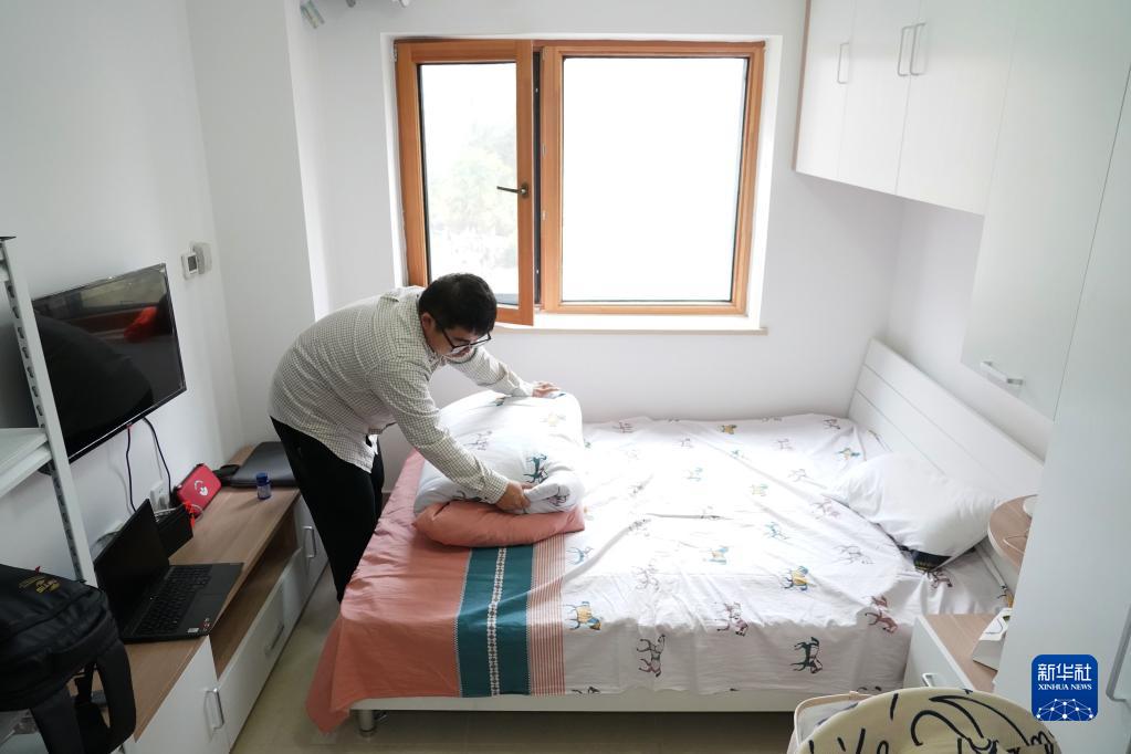 在金隅·山樾嘉園小區,北京科技大學應屆畢業生石全在居住的青年公寓內生活(10月23日攝)。