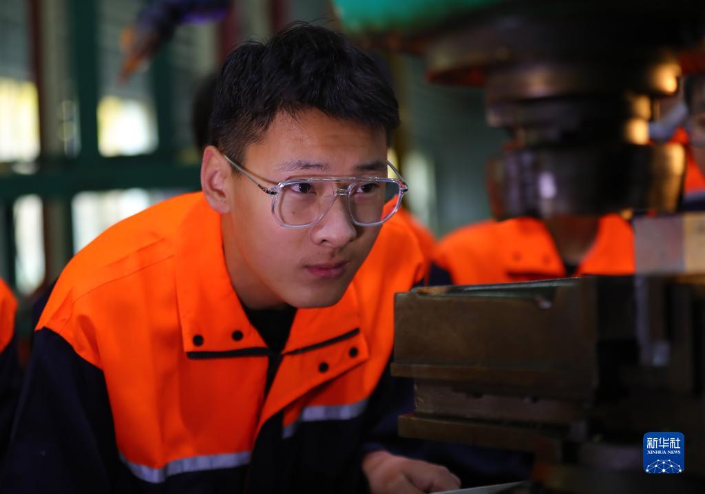 11月2日,在沈陽工學院智能制造實訓中心,機械電子工程專業學生進行銑工實訓。