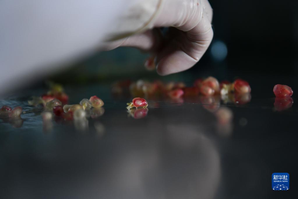 11月3日,在安徽省農業科學院園藝研究所實驗室內,石榴創新團隊成員準備對石榴籽稱重。