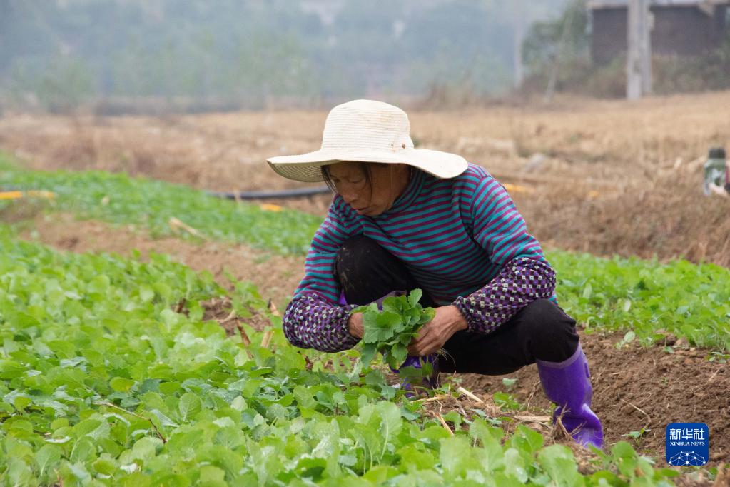 深秋時節,在湖南省湘潭市湘潭縣的田間地頭,當地村民搶抓農時種植油菜苗,確保油料作物穩產增收。