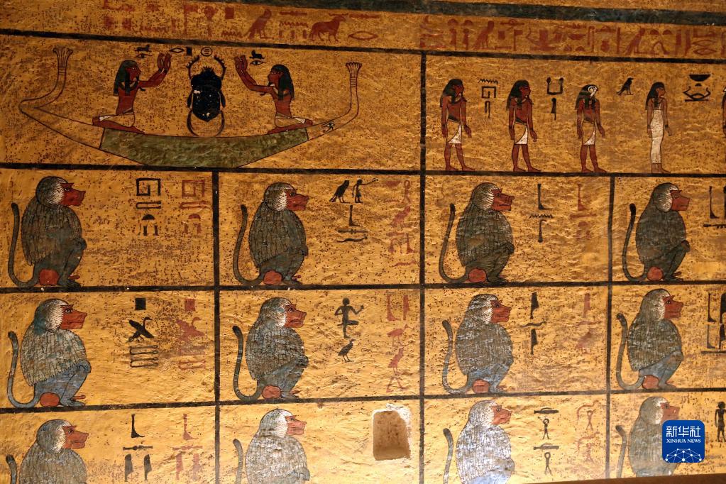 這是11月4日在位于埃及盧克索帝王谷的圖坦卡蒙墓內拍攝的壁畫。