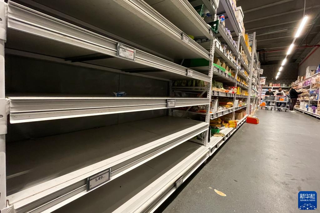 10月31日,比利時布魯塞爾一家超市售賣平價雞蛋的貨架空空如也。