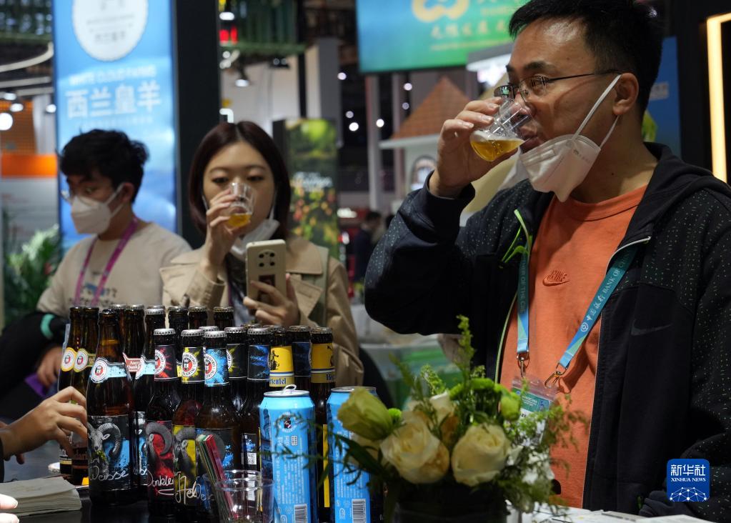 11月5日,觀眾在第五屆進博會食品及農產品展區品嘗精釀啤酒。