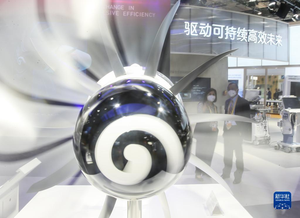11月5日,工作人員在第五屆進博會技術裝備展區美國通用電氣展臺向觀眾介紹產品。