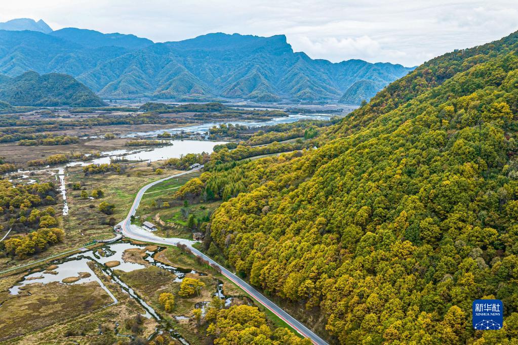 10月15日拍攝的神農架大九湖國家濕地公園一景(無人機照片)。