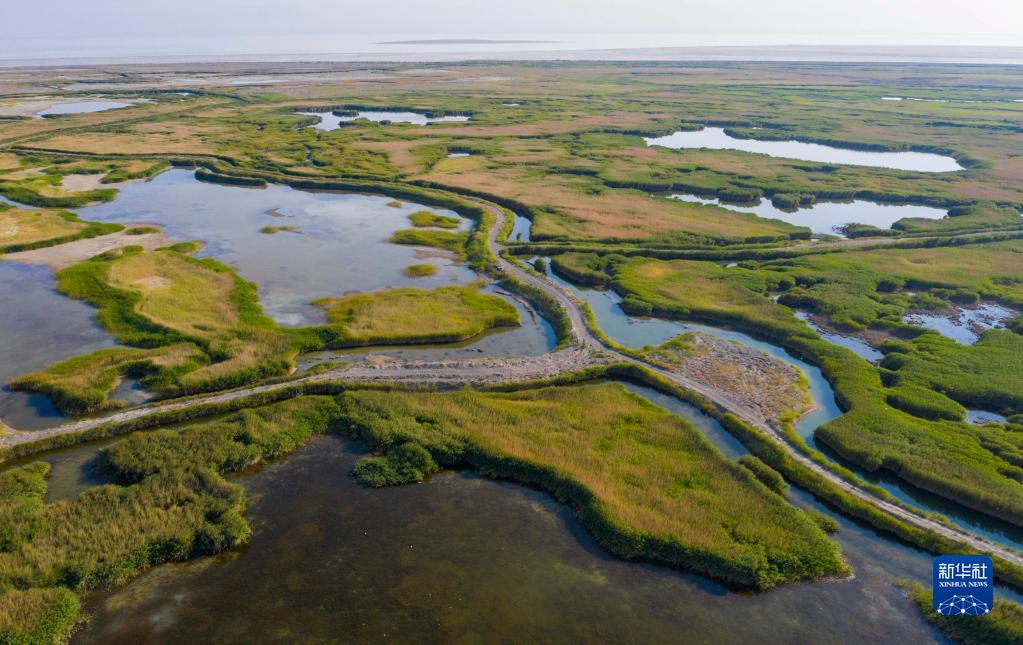 新疆艾比湖濕地國家級自然保護區一角(2020年7月14日攝,無人機照片)。