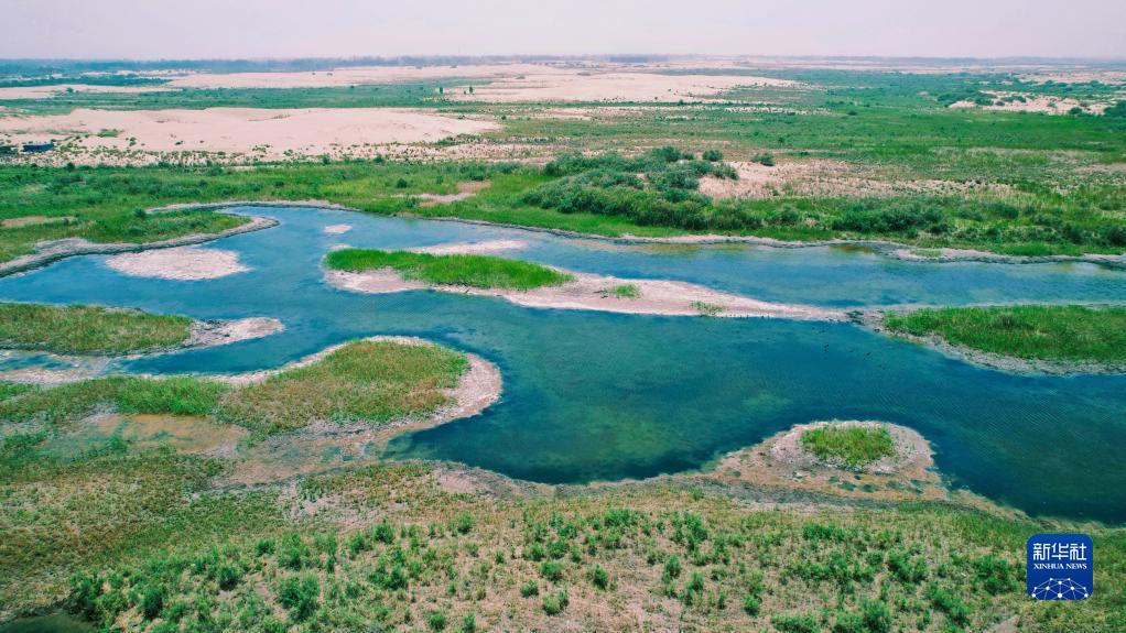 新疆拉里昆國家濕地公園一角(2022年7月19日攝,無人機照片)。