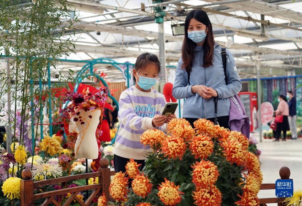 11月5日,游人在北京世界花卉大觀園觀賞菊花。