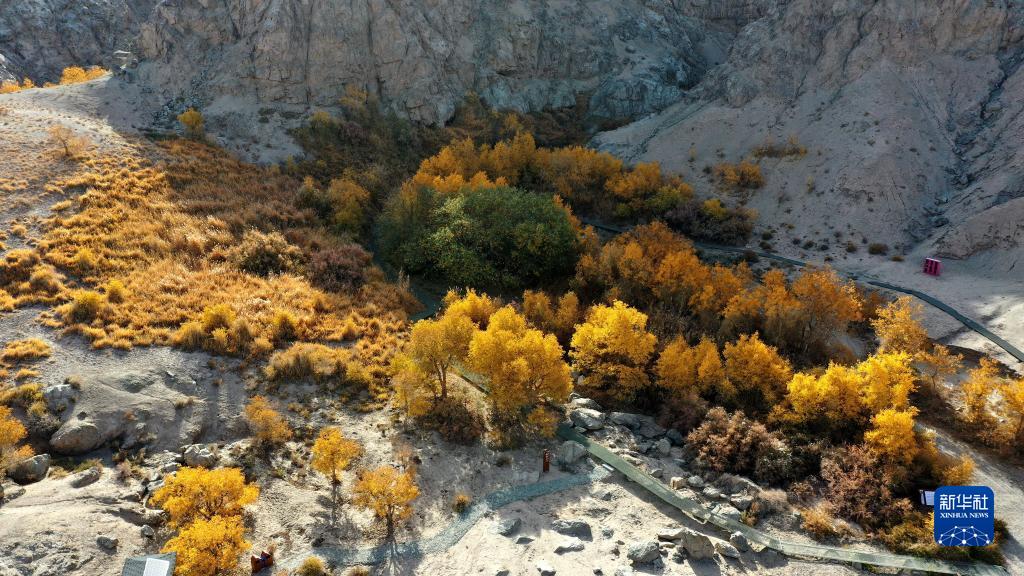 這是10月30日在甘肅省敦煌市懸泉置遺址懸泉谷內拍攝的秋景(無人機照片)。 新華社發(張曉亮 攝)