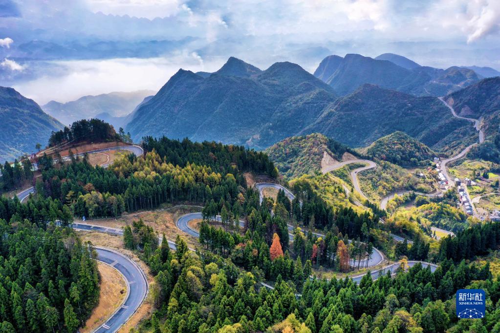 這是10月31日在湖北省恩施土家族苗族自治州建始縣業州鎮拍攝的秋景(無人機照片)。 新華社發(張遠明 攝)